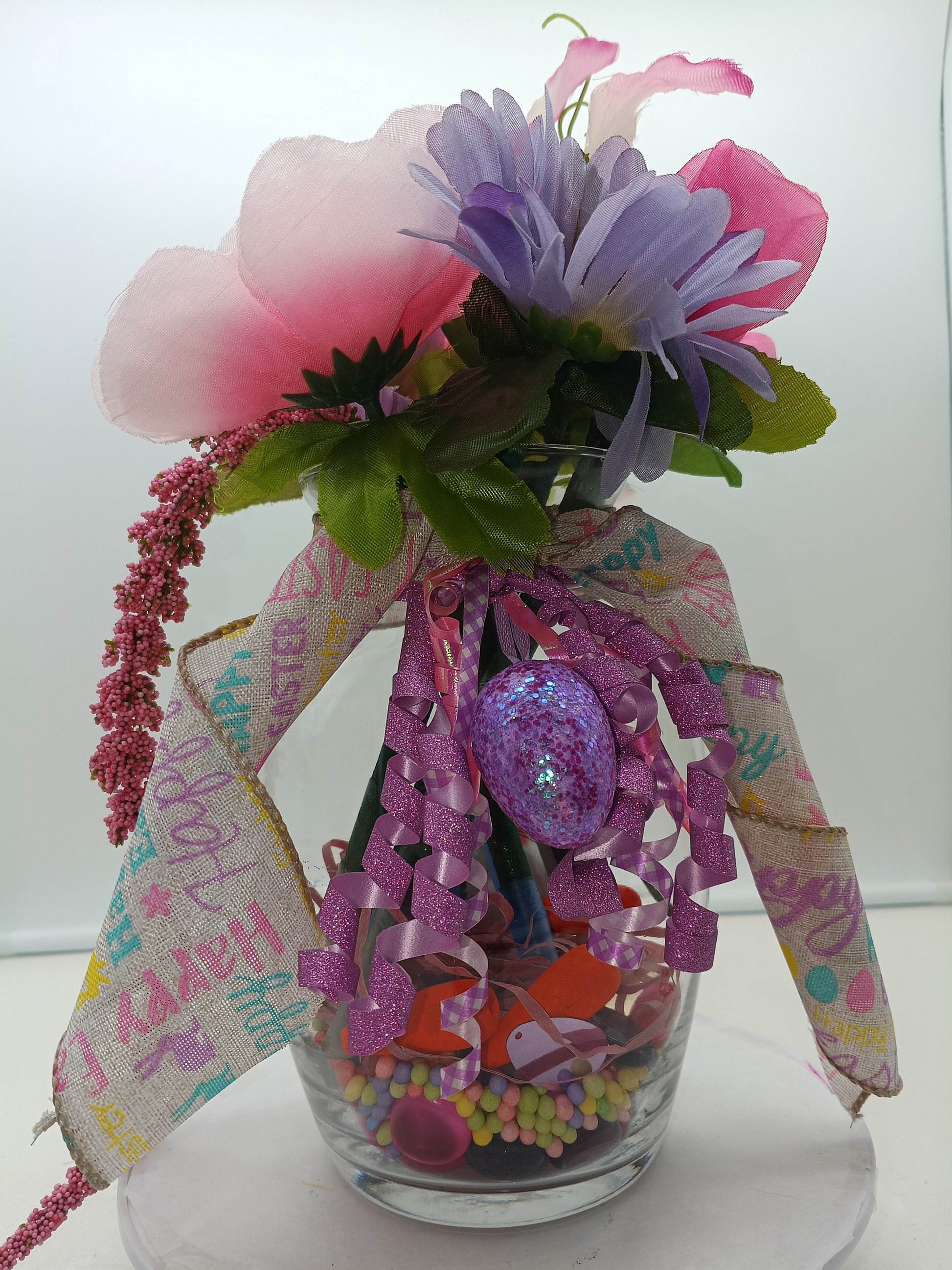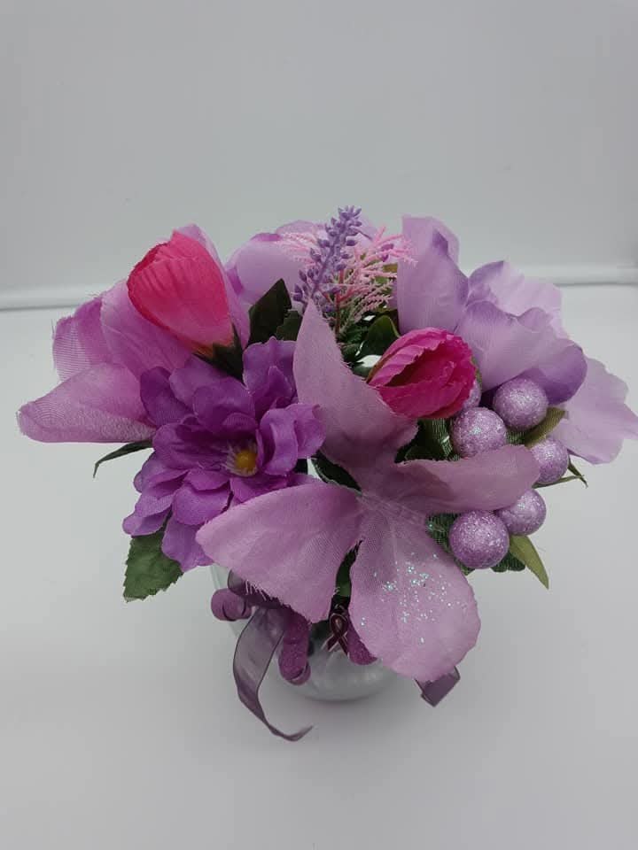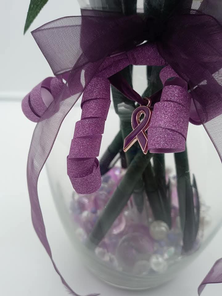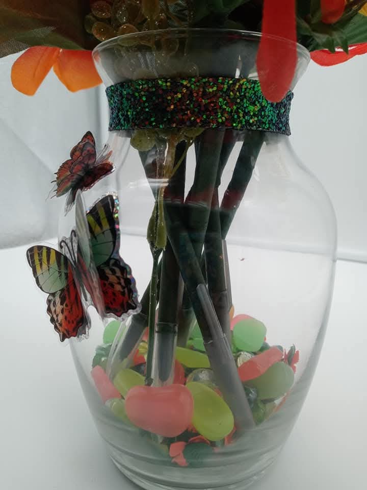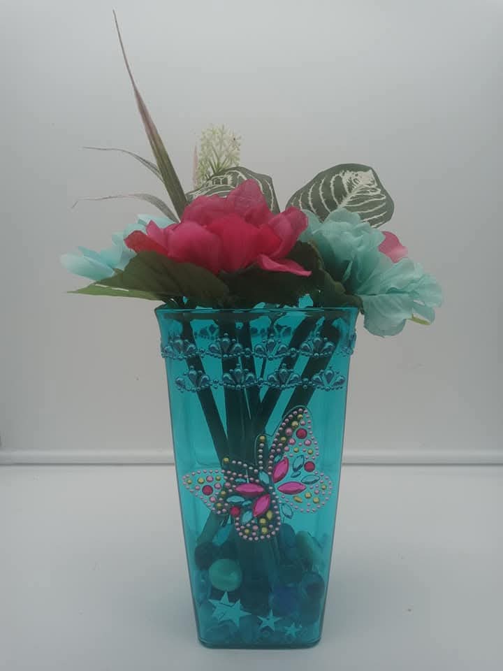 We also have plastic vase options. Vase colors are clear, teal, neon yellow, purple and grey.