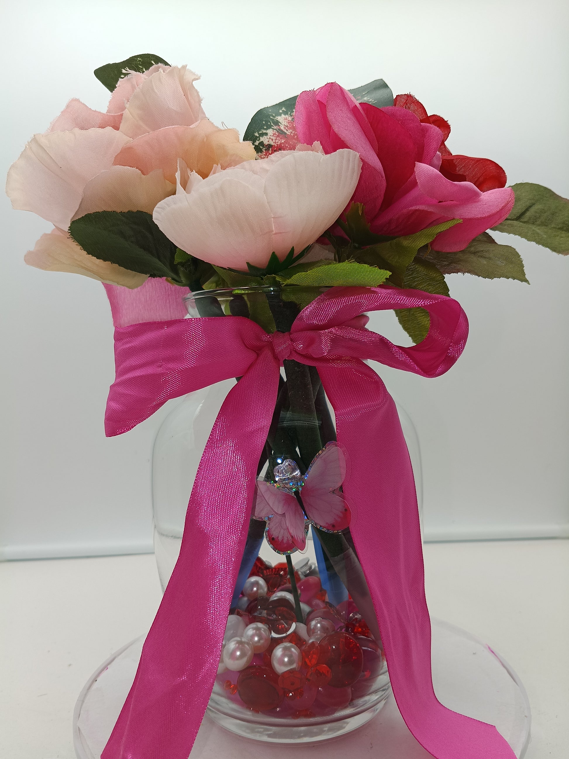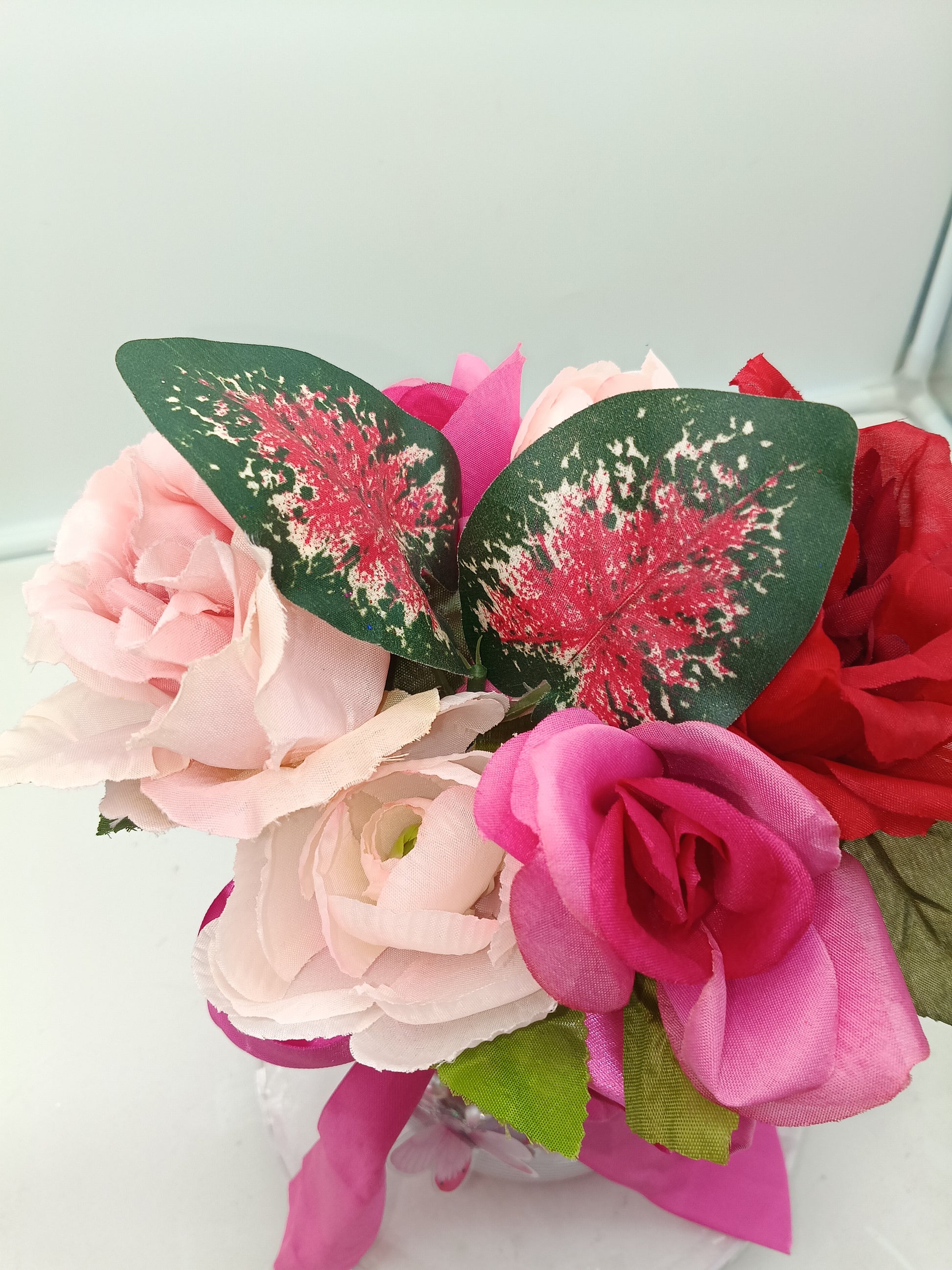 Beautiful red, blush, and tan colored flowers adorn this arrangement with sophistication and class. Pick this one up for the lover in your life!