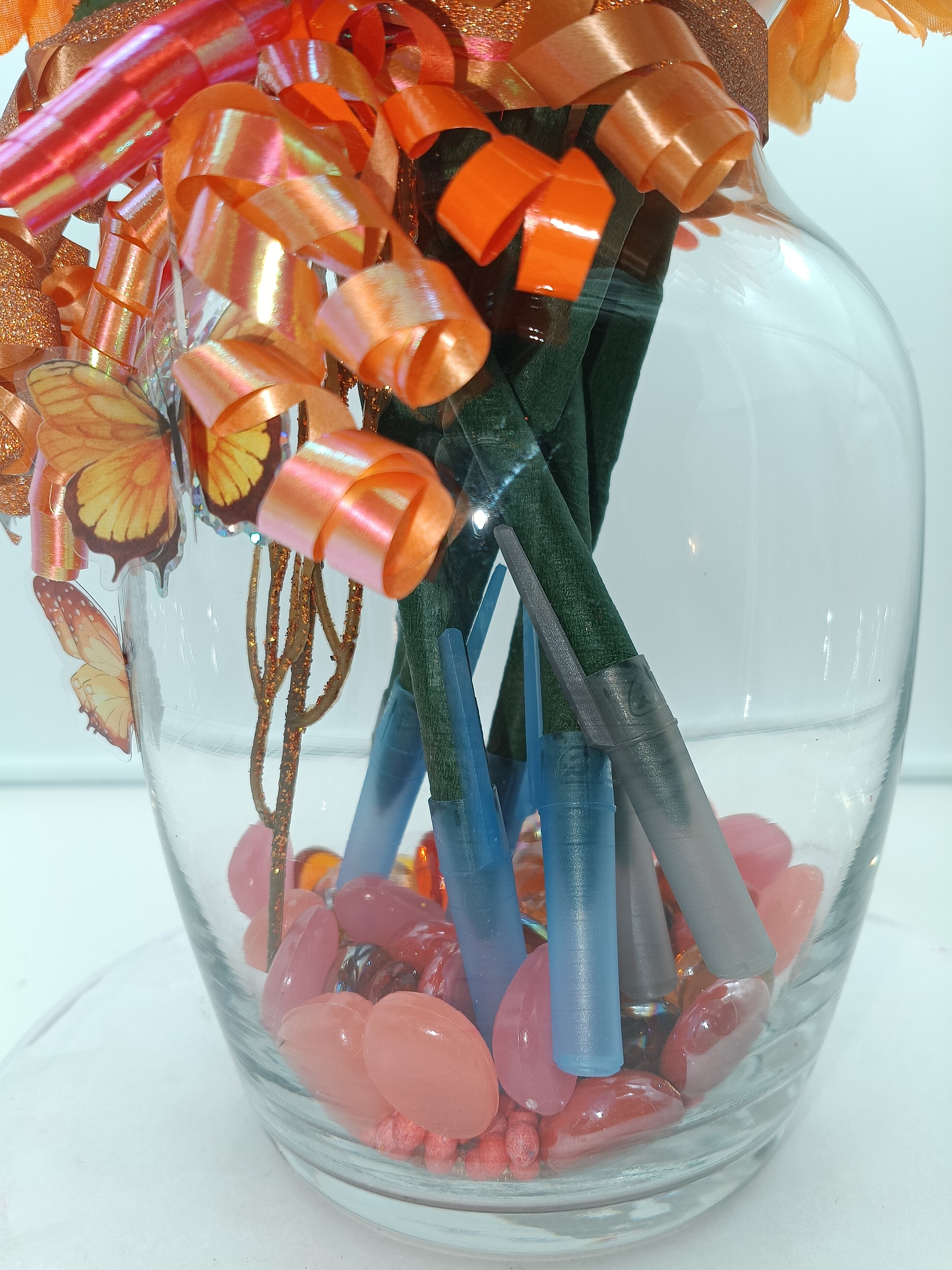 8ct pen arrangement (4 Blue ink/4 Black ink), glass vase